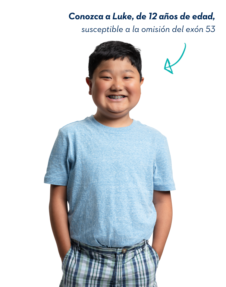 Si aún no lo ha hecho, haga una prueba genética para identificar la mutación genética de su hijo; su médico o un asesor en genética pueden interpretar los resultados para determinar si su hijo es parte del 8 % estimado de las personas con DMD (distrofia muscular de Duchenne) que son susceptibles al tratamiento con VYONDYS 53. Los resultados de la prueba genética también pueden ayudar a su médico a tomar otras decisiones sobre el tratamiento de la enfermedad.
